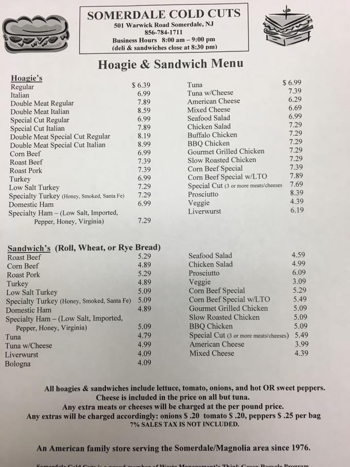 Somerdale Cold Cuts Menu (Update 2025)